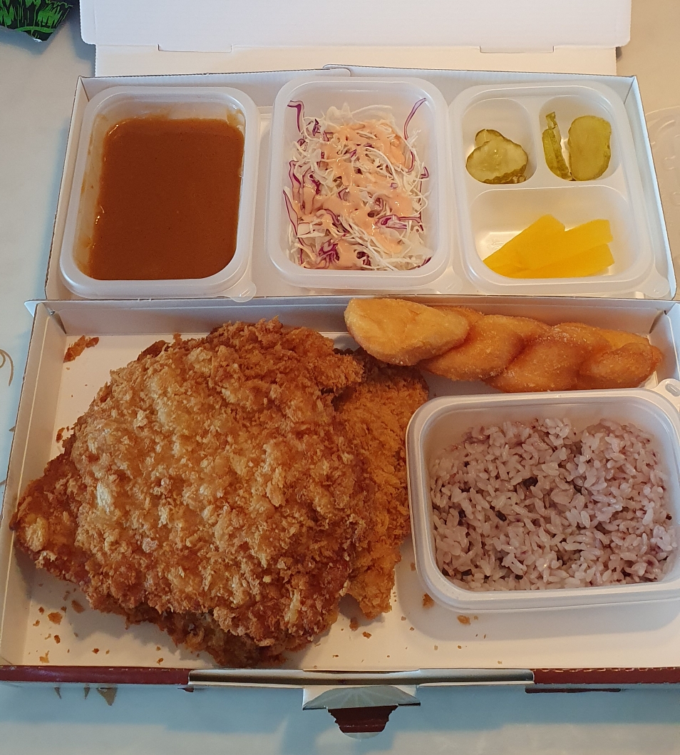 꽈배기,밥,돈까스