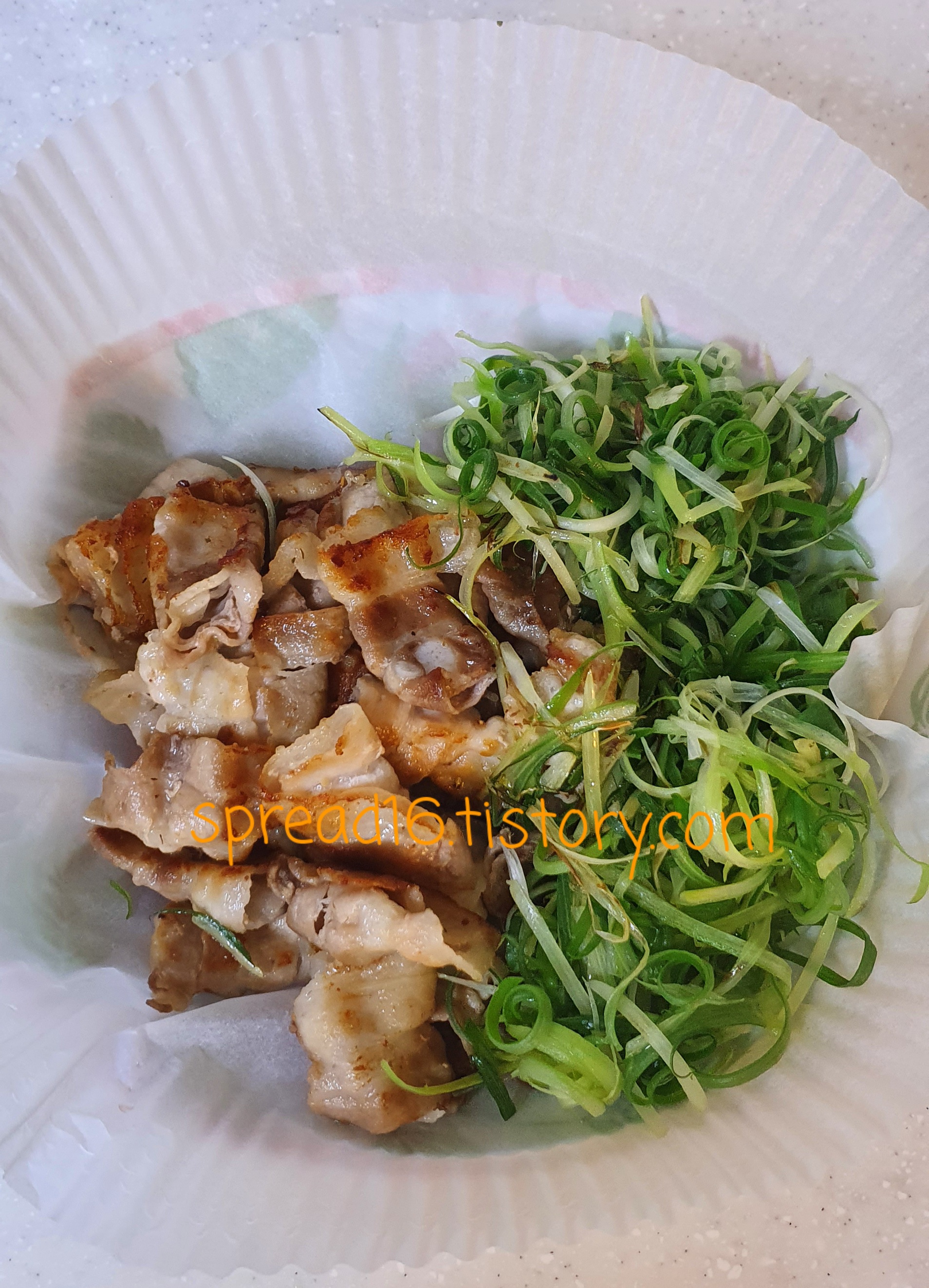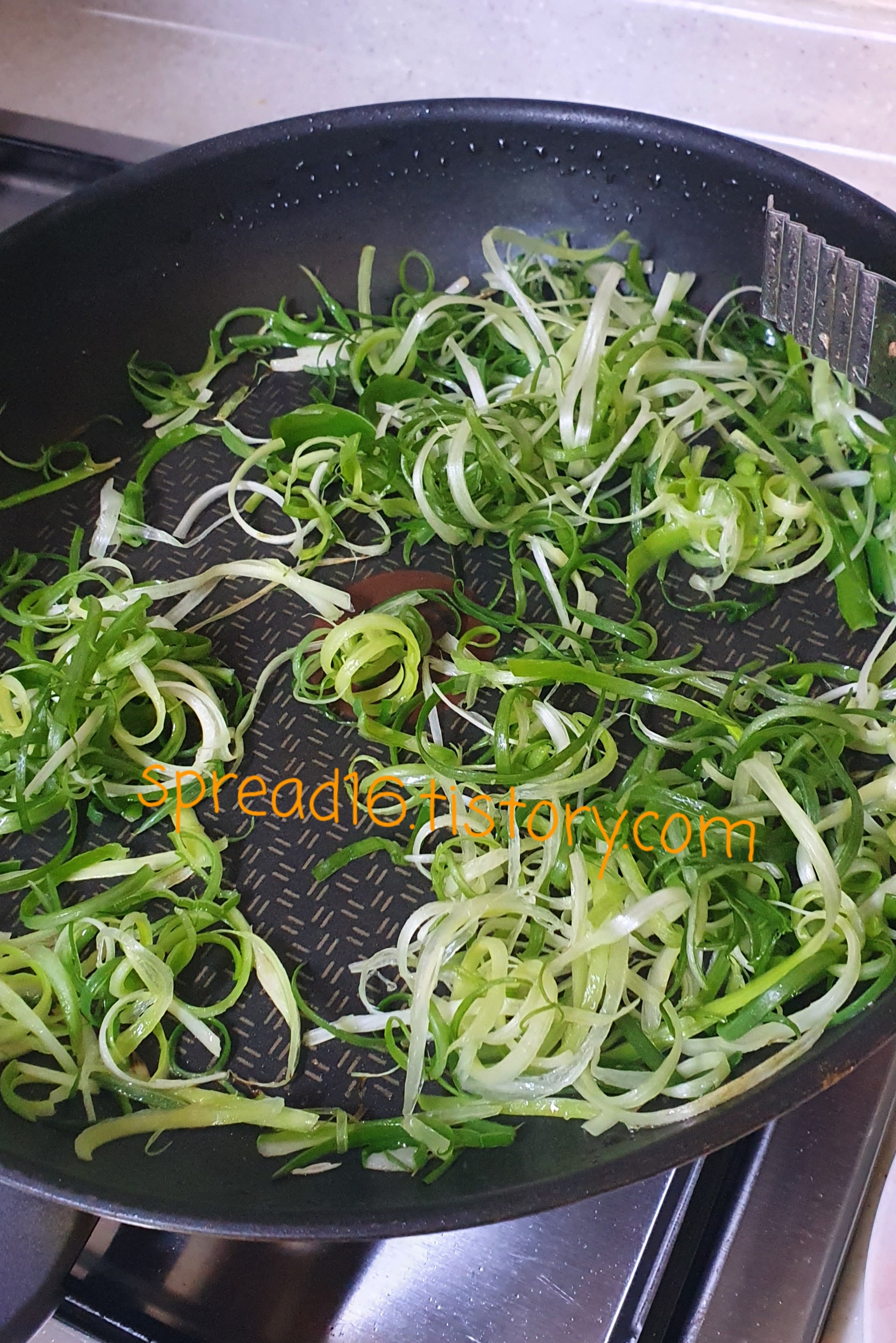 삼겹살에서 나온 기름으로 파채 볶기