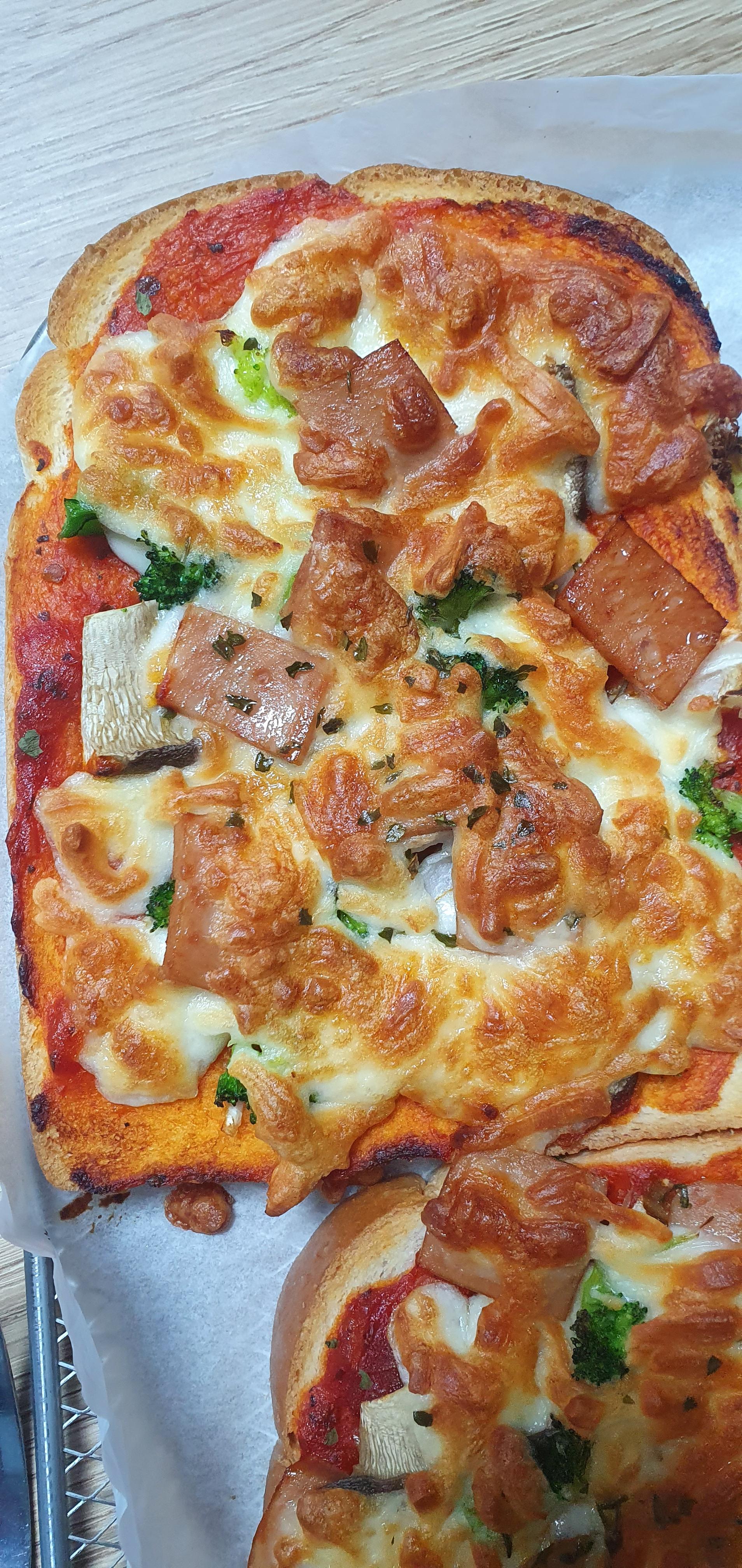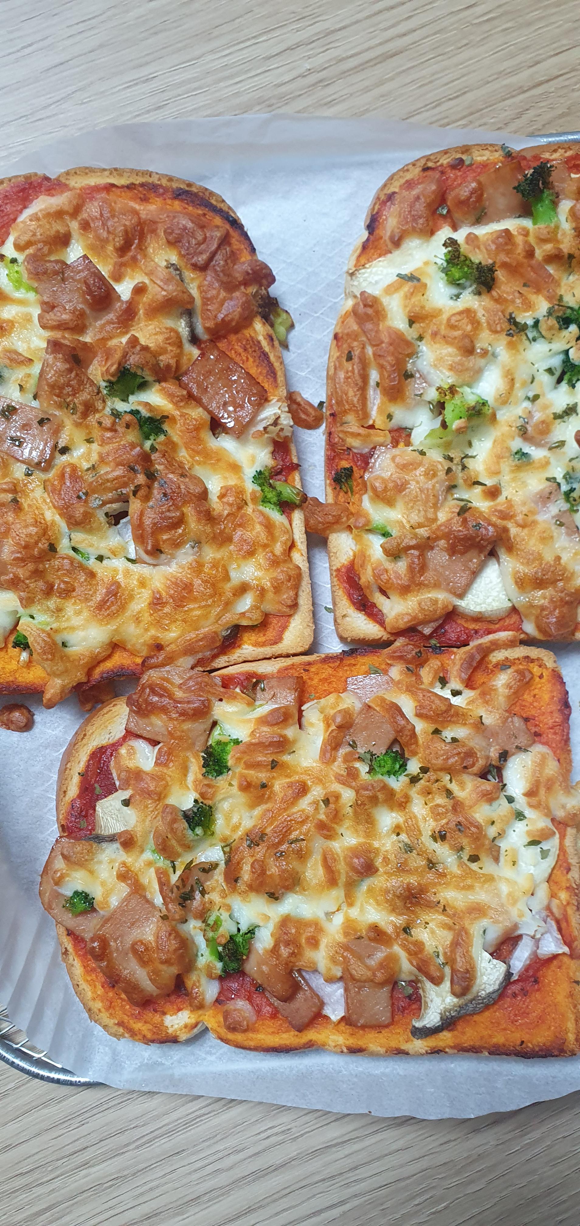 준비물; 식빵, 토마토소스, 양파, 버섯,