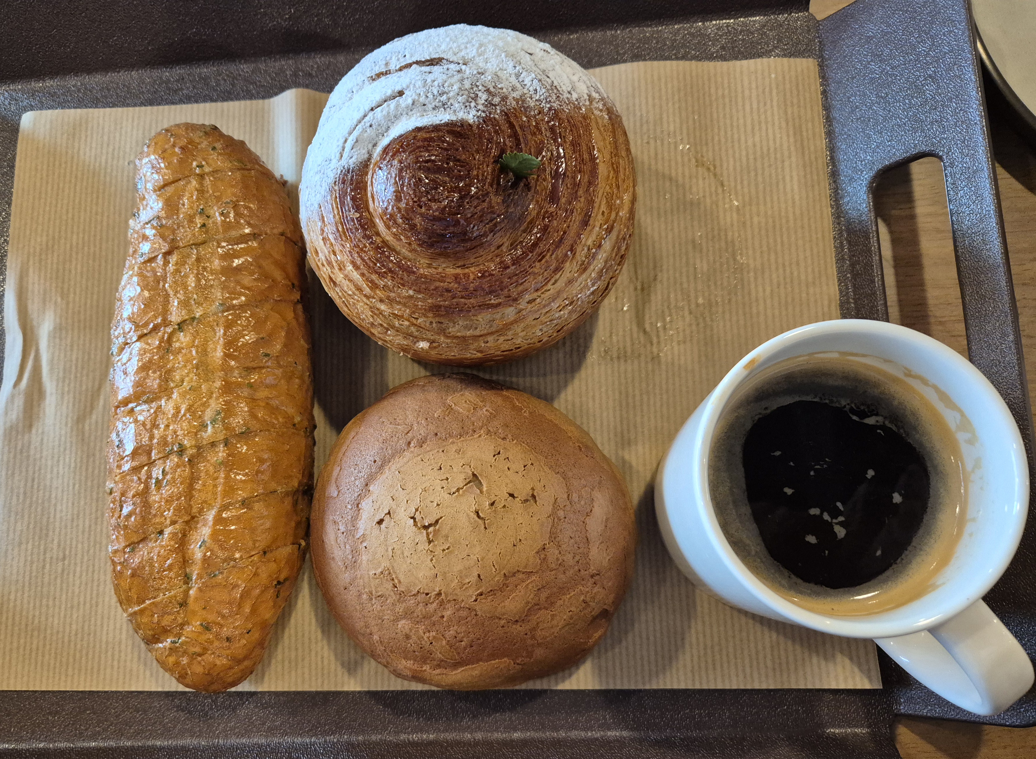 따뜻한 아메리카노와 빵을 먹었습니다.