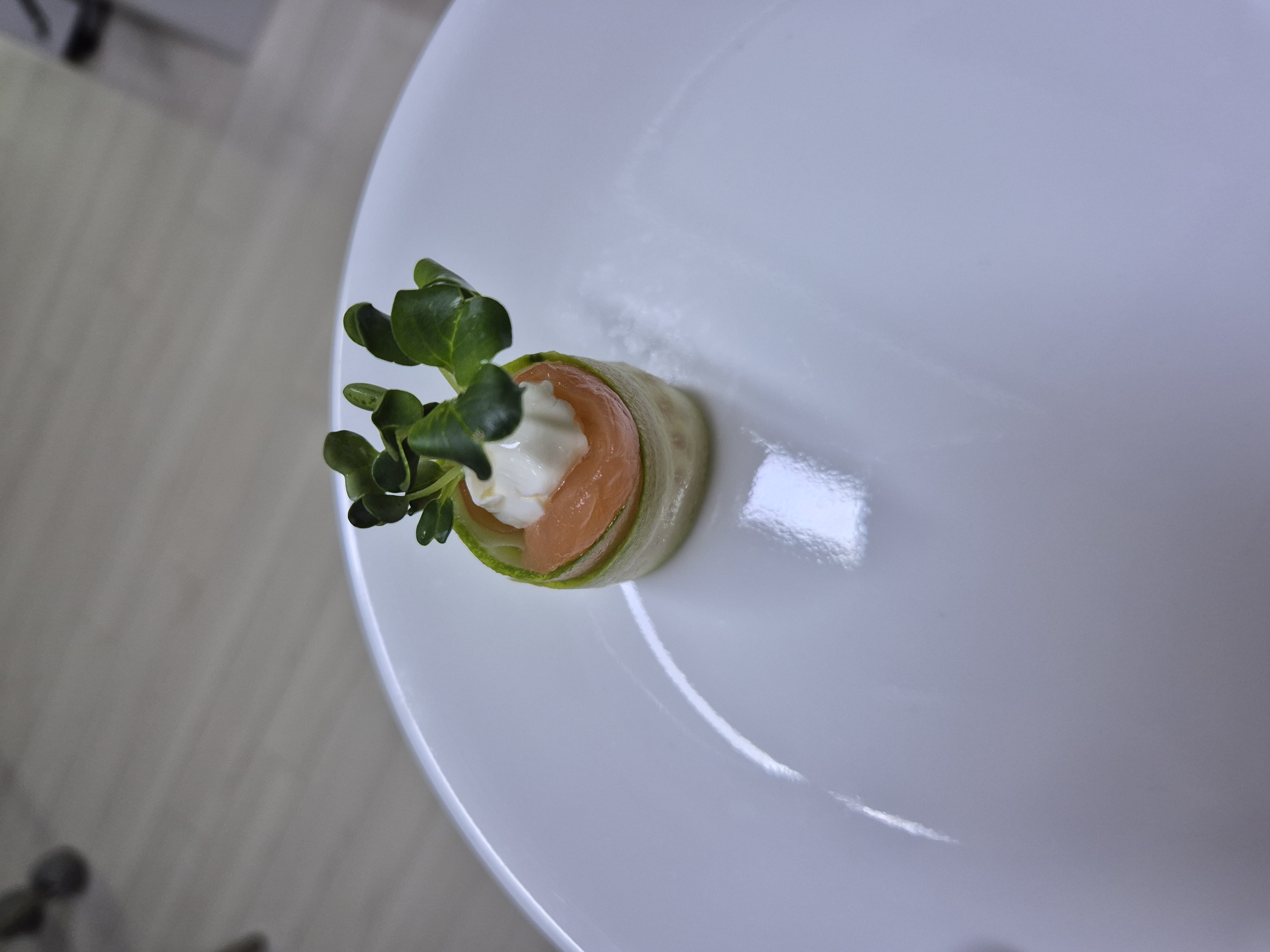 맨밑에 오이 깔고 연어 올리고 치즈올리고 무순올리고 돌돌 말기