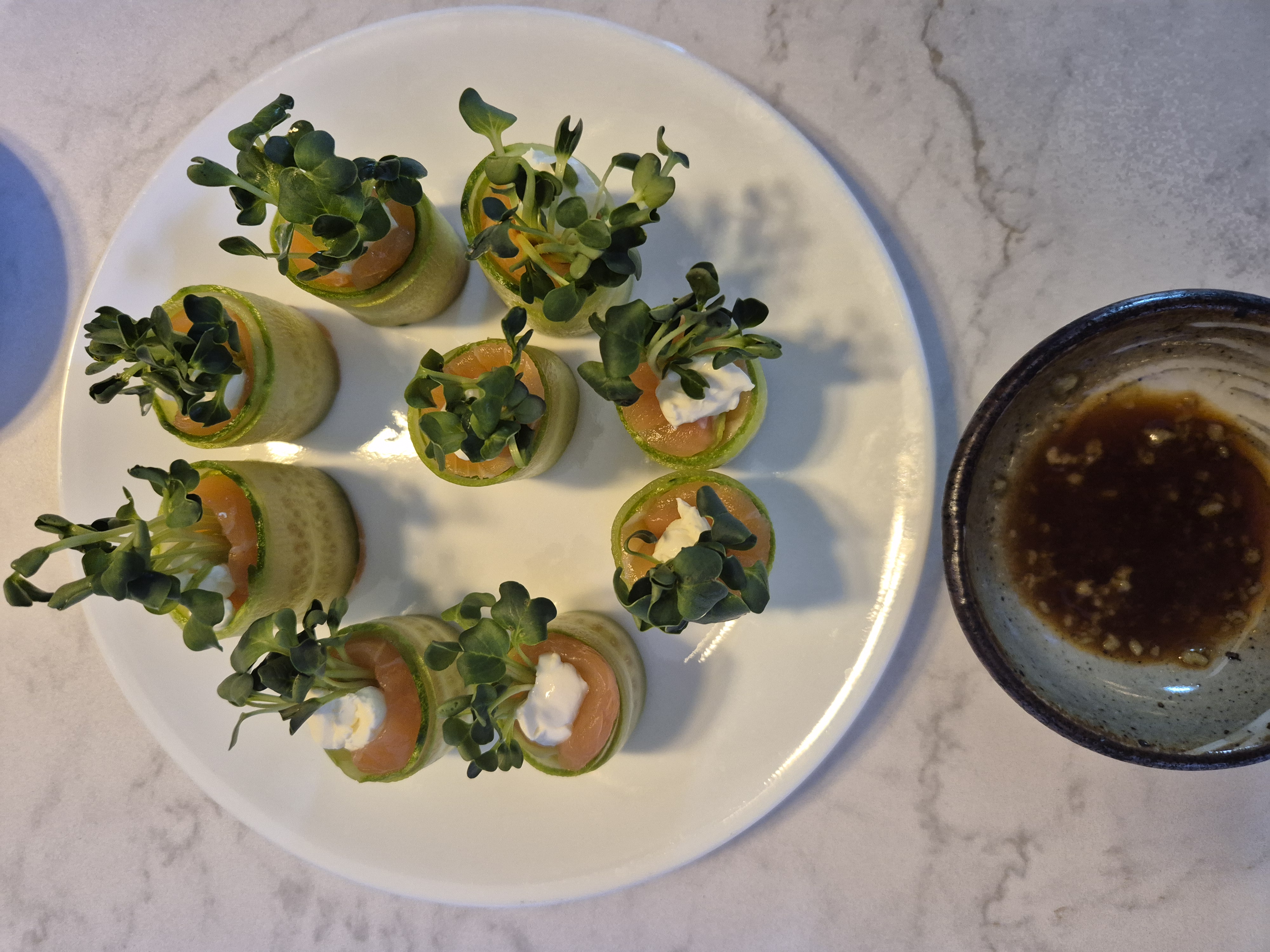 재료:크림치즈, 오이,연어,무순. 그리고 와사비간장소스